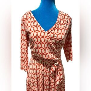 41 Hawthorn red geometric stretchy wrap dress 3/4 sleeves size small