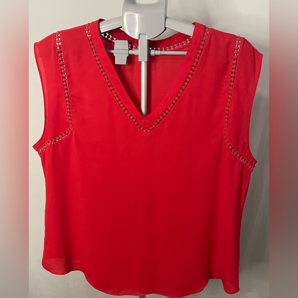 41 Hawthorn red too. Slight capped sleeve. Pretty eyelet detail. V neck. Size XL. In great condition