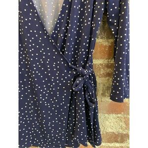 41 Hawthorn Stretchy Navy/White Polka Dot Wrap Blouse Women’s Medium M