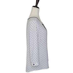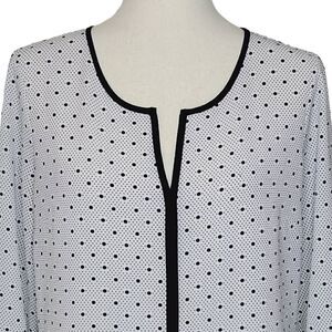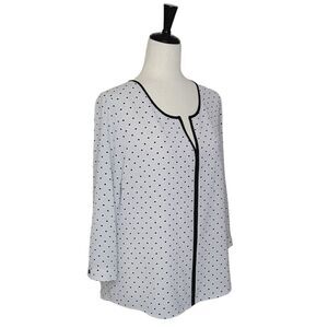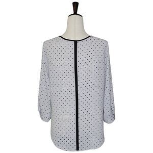 41 Hawthorne Black & White Polka-dot Split Neck 3/4 Sleeve Blouse Size M