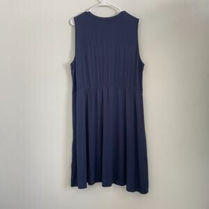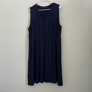 * 41 Hawthorne Dress Women 2X Blue Midi Career Stretch Button Popover Stretch