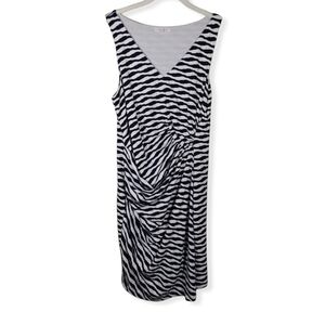 41 Hawthorne Navy White Print Sleeveless Ruched Dress Size Large