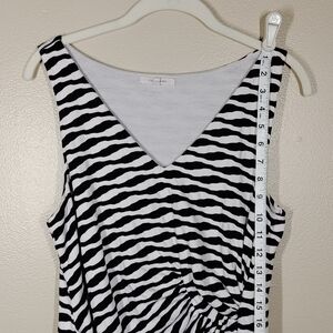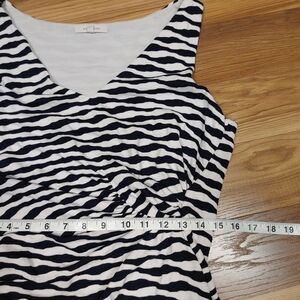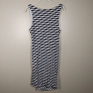 41 Hawthorne Navy White Print Sleeveless Ruched Dress Size Large. Navy and white textured pattern. Sleeveless. Tank dress. Ruching in front. Lined. Polyester, cotton, rayon, spandex. Measurements are approximate.