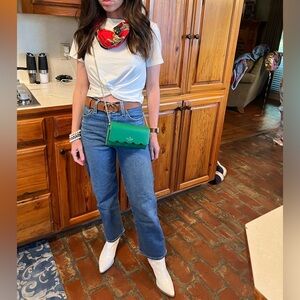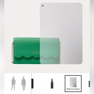 There are pictures of a green Gemma crossbody in this listing to show you how your phone, water bottle, and iPad compare to the size of this purse.