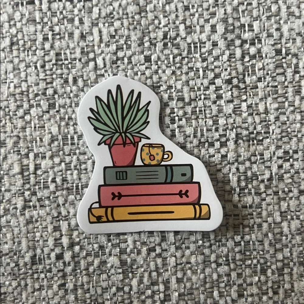 Vibrant sticker featuring a stack of books. Perfect for book lovers!