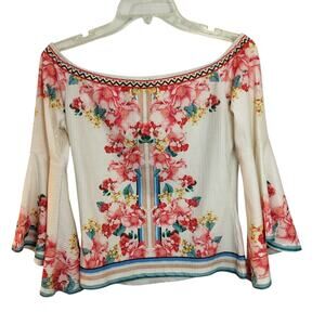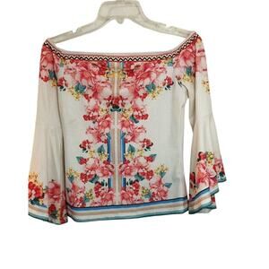 4118)Boston Proper Off the Shoulder Floral Prints Bell Sleeve Blouse Size Small
