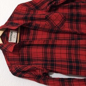 4/$12 Garage Red and Black Plaid Long Sleeve Button Down Top Women's size Medium