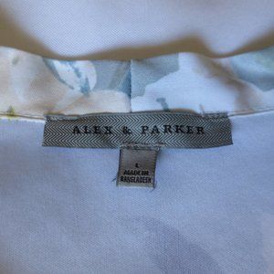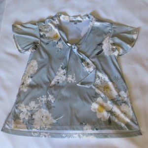 4/$14 ALEX & PARKER womens SHIRT grey SHORT SLEEVE floral TIE bow SIZE LARGE