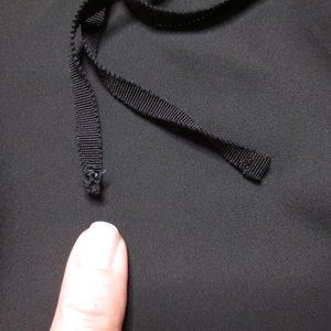 Very good condition. No stains. The only noticeable flaw is the end of one of the ties is starting to fray…see pic.