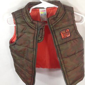 4/$15 Baby Boy Puffer Vest 6-9 Months Camo and Orange