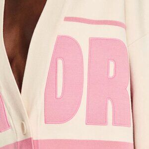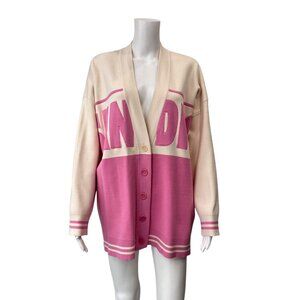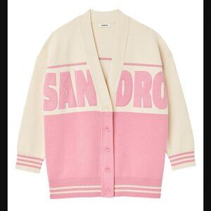 $415 SANDRO White Pink Striped Benidorm Oversized Cardigan Sweater size Large