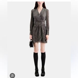 $415 The Kooples Metallic Pleated Mini Dress NWT