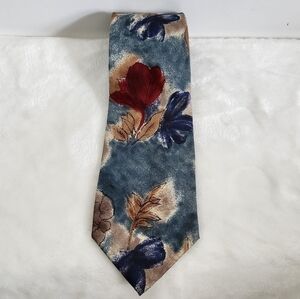 417 By Van Heusen Silk Floral Flower Blue Tan Burgundy Necktie Tie