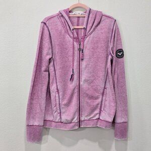 A soft, easygoing layer from Roxy, this pink full‑zip hoodie blends casual comfort w/ surf‑inspired style.