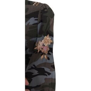 4197) Savanna Jane Camo Embroidery Split Neck Sleeve Tab Boho Hippie Top Small