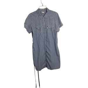 4199)Vtg Levi's Women Gingham Snap Button Pearl Tie Waist Short Sleeve Dress XL