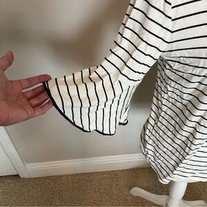 41 Hawthorn Bell Sleeve Top Size Medium. 3/4 length sleeve, white top with black stripes.