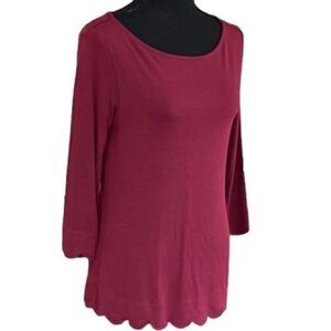 41 Hawthorn Burgundy Red Claudess Scallop Top Size S