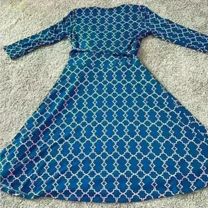 Elevate your wardrobe with this stunning 41Hawthorn Faux Wrap Dress in a beautiful shade of blue. The dress features a flattering V-neckline, 3/4 sleeves, and a knee-length hemline. The wrap style adds a touch of sophistication to the dress, making it perfect for any occasion.