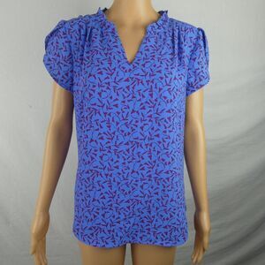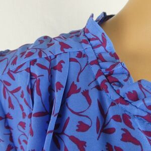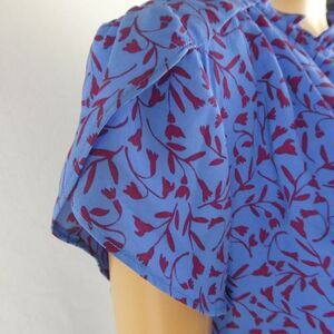 41Hawthorn Floral Blouse Split Neck Short Tulip Sleeve Career Vine Blue Medium