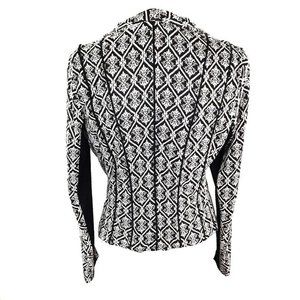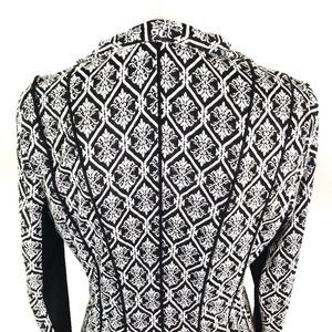 41Hawthorn Womens Open Front Sweater Jacket Black White Geometric Stretch M
