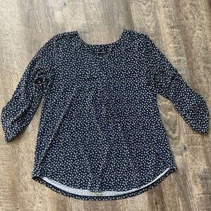 This listing is for a VGUC 41 Hawthorn Knot Top in size medium. The top is blue/white print v-neck featuring camo sleeves. Please see the photos for the dimensions.