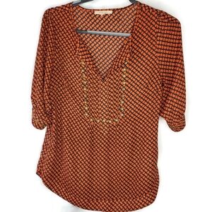 41Hawthorn Orange and Blue Studded Top Blouse Size Medium