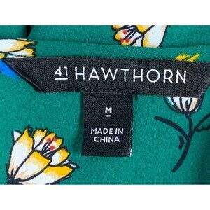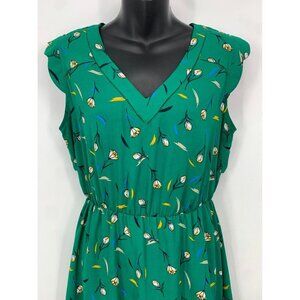 41Hawthorn Women Dress Size Medium Green Ruffled Cap Sleeve V-Neck Stretch Waist