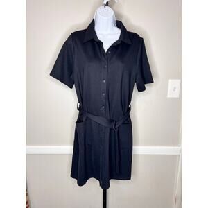 41Hawthorn Womens Sammie Point Shirt Dress Short Sleeves Black Size M Petite NEW