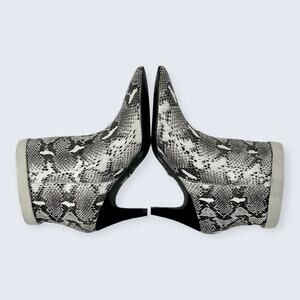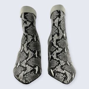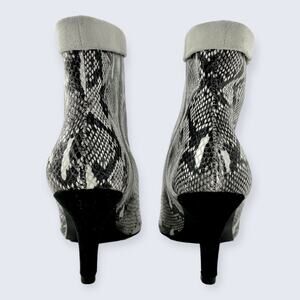 42Gold Olvy Black White Snake Leather Cuff Slip On Pointed 3" Heel Ankle Boot, size 7. Retail is about $175. Lined with leather. This boot is currently listed as Ojai on the 42 Gold section of the Chinese Laundry website. Excellent used condition.