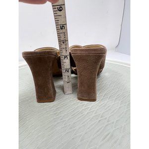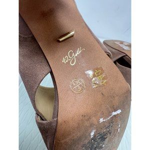 42 Gold Saldana Kid Suede Sandal Womens 6 Open Toe Criss Cross Strap Tan