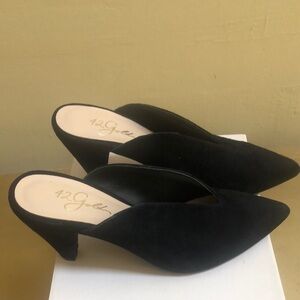 42 Gold Women’s Overcome V Throat Black Genuine Suede Slip On Mules Size 7.5/38