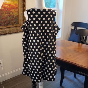 42 POPS sz sm, black dress with white polka dots cold shouldered
