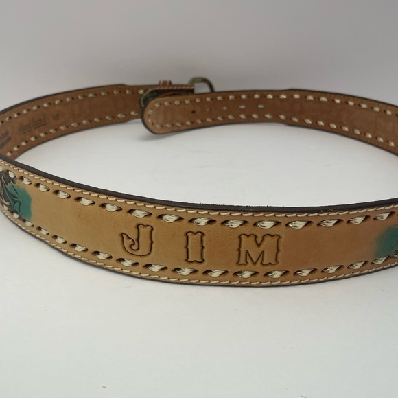 42 inch Top Grain Leather Belt with “Jim” hand tooled in the belt. Great condition.
