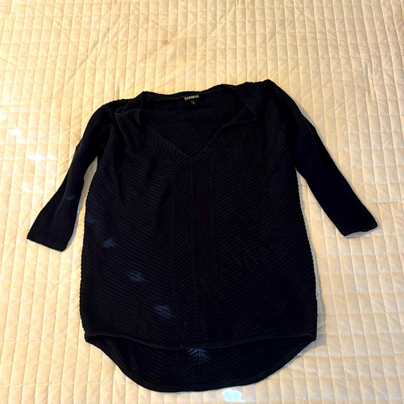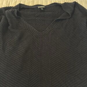 Women’s express size medium black sweater. Good used condition! Last picture didn’t photograph well, it’s not as faded as the pic shows (lighting is off), it’s a true black, I was just trying to photograph the details. Runs a bit big in my opinion. Bundle and save!