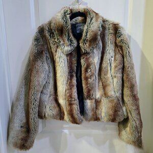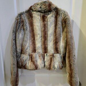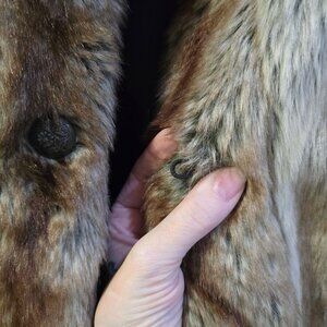 A textured faux fur coat that blends soft winter warmth w/ a vintage-inspired palette of browns, creams & muted neutrals.