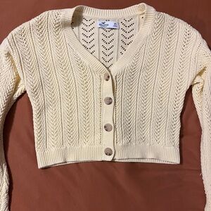 Stay cozy and cute with this extra long sleeved cream/yellow cardigan cropped sweater. This butter color is trending in 2025! I’m a size small/medium and it fits me. In great condition - only worn 3 times. I’m getting ripped off here!