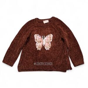 4/$20 - Btween Girls Brown Chenille Comfy Sequin Butterfly Sweater Size 8