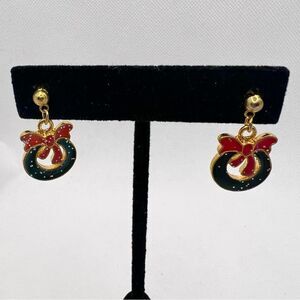 🍭4/$20 Christmas Wreath Glitter Post Stud Dangle Earrings