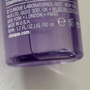 Clinique makeup remover for lids, lashes, and lips. Travel size 1.7 oz/ 50ml.