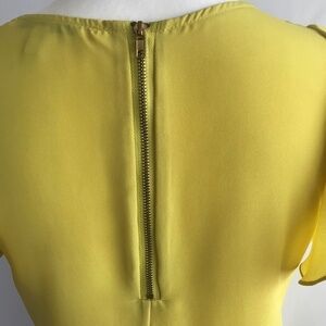 Collective Concepts golden yellow blouse top with butterfly sleeves. It has small pleats down the front and a zipper in back for closure. Gently used...size Xsmall...no flaws noted...see photos for care details.