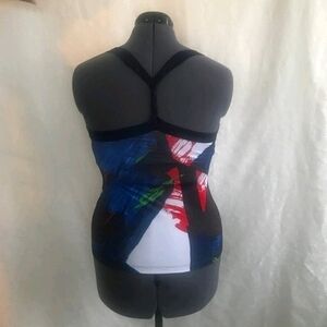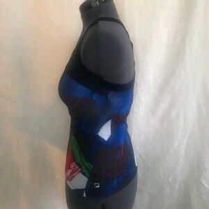 Fila athletic tank top with colors of black, blue, red, white, green and a twist on the back. Gently used...size small..no flaws...RN 91175