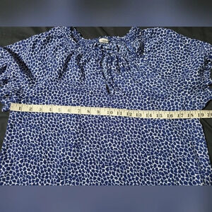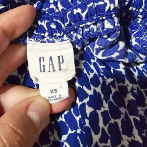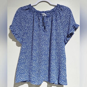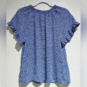 ✨️4/$20, GAP Royal Blue Leaf Pattern Blouse Tie Keyhole Front, Ruffle Details