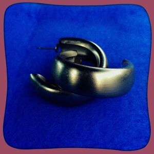 Golden hoop earrings. Approximately an inch in diameter. Has some slight signs of wear, but nothing very noticeable.