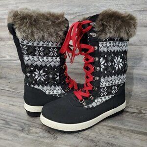 Trendy, boots, fur, fair isle, cold, warm, winter, weather, snow, knitted, calf, season, fashionable, classic, skiing, outerwear, outdoor, sports, casual, chic,