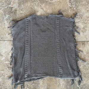 4/$20 LEO & SAGE Fringe Sleeveless Poncho in Slate Grey size small 100% Cotton