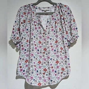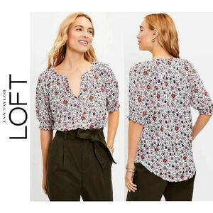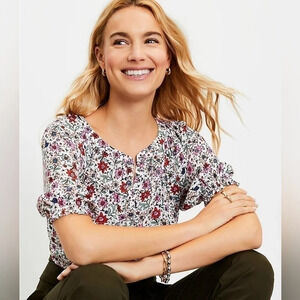 ✨️4/$20. LOFT Floral Blouse with Puff Sleeves, Colorful Lightweight, SP