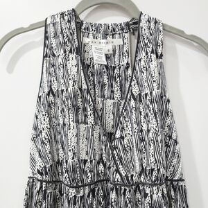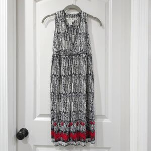 ✨️4/$20. MAX STUDIO Black White Abstract Mini Halter Dress, Red Zig Zag Detail