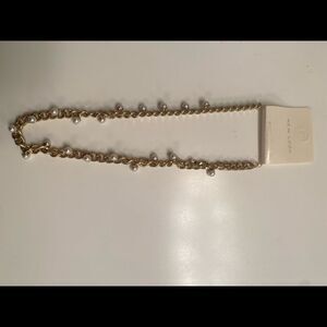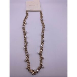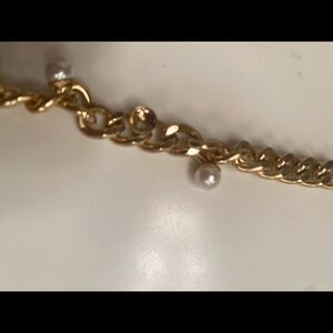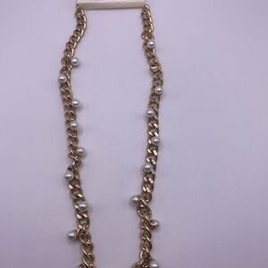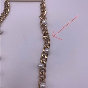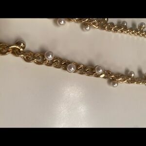 Gold tone chain adorned with pearls. One Pearl is missing, see photo.