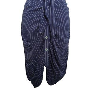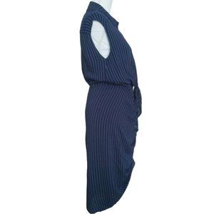 4/$20 Shinestar Navy Blue Pinstripe Dress Large Ruched Button Front Sleeveless